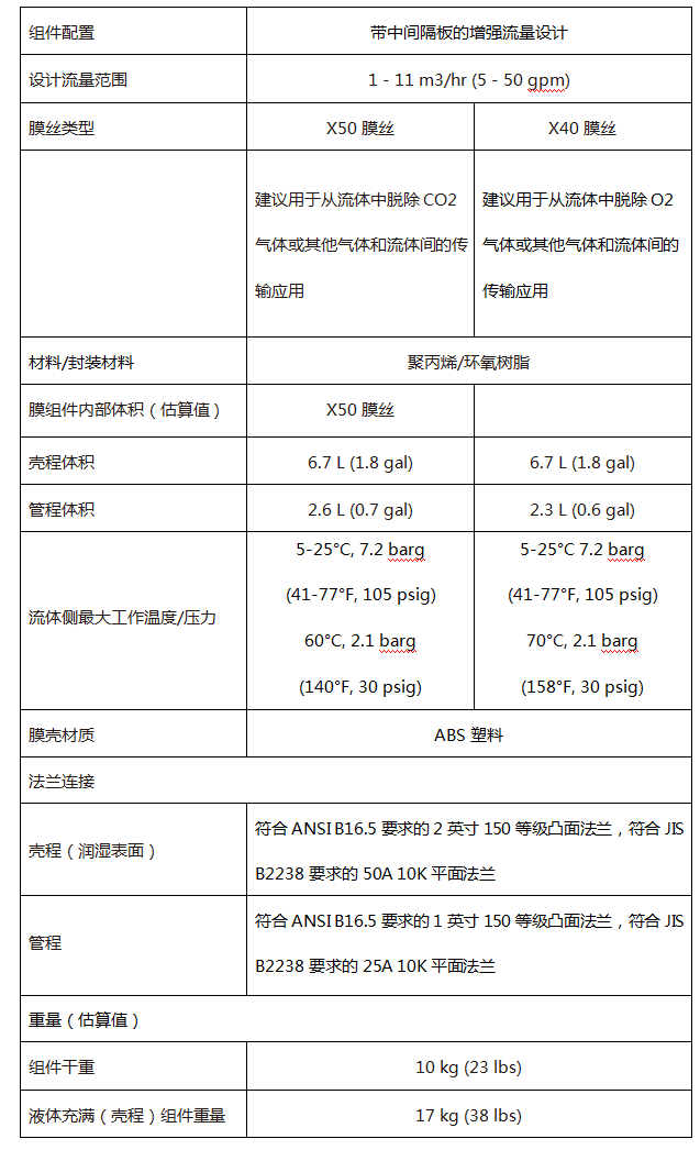 3M™ Liqui-Cel™ EXF-6x28系列膜接触器产品参数表