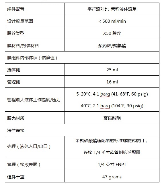 3M™ Liqui-Cel™ MM-1x5.5系列膜接触器产品参数表