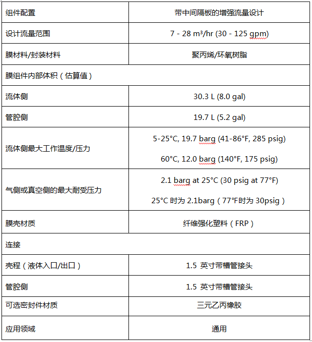 3M™ Liqui-Cel™ EXF-8x80系列膜接触器产品参数表