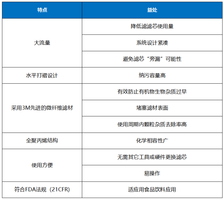 TMHFM大流量滤芯采用3M新型无纺布熔喷技术。独特的滤材设计具有优异的抗有机物和微生物等杂质特性,有效提高滤芯容污能力,延长滤芯使用寿命。