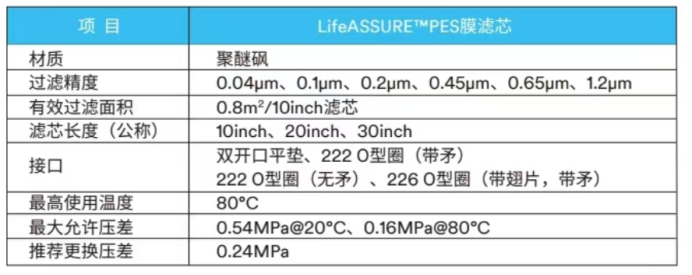 低压力损失、大流量亲水性聚醚砜性膜滤芯特点: