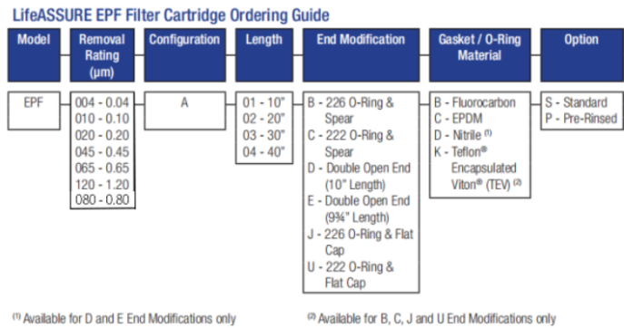 3M™EPF终端系列滤芯订购指南: