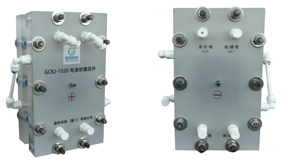 电渗析过程是电化学过程和渗析扩散过程的结合;在外加直流电场的驱动下,利用离子交换膜的选择透过性(即阳离子可以透过阳离子交换膜,阴离子可以透过阴离子交换膜),阴、阳离子分别向阳极和阴极移动。离子迁移过程中,若膜的固定电荷与离子的电荷相反,则离子可以通过;如果它们的电荷相同,则离子被排斥,从而实现溶液淡化、浓缩、精制或纯化等目的。