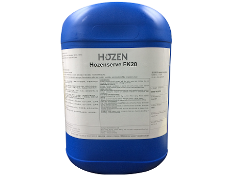 Hozenserve FK20 活性分子能迅速穿透细胞膜,作用于蛋白基团,使细胞正常氧化还原终止,它的分支还可以选择性的溴化或氧化微生物的特殊酶代谢物,导致细胞死亡。