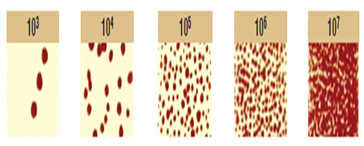 微生物群落会在Hozen MICRO Indicator检测片表面留下痕迹。菌落密度可以通过目视比较微生物密度对照表估算得到。细菌菌落显示为红色点(染料染色结果),生长在检测片浅黄色一侧。真菌菌落(霉菌和酵母)生长在检测片红色一侧。霉菌会显示得小而集中,酵母则会比较大并且边界模糊。Hozen MICRO Indicator的套件中包含建议的评级,包括可以接受的污染水平以及需要即时采取措施的污染水平(评级因体系不同而异)。Hozen MICRO Indicator是一次性的。可以通过清洗剂/漂白剂浸泡过夜或高压灭菌轻松处置使用过的产品。