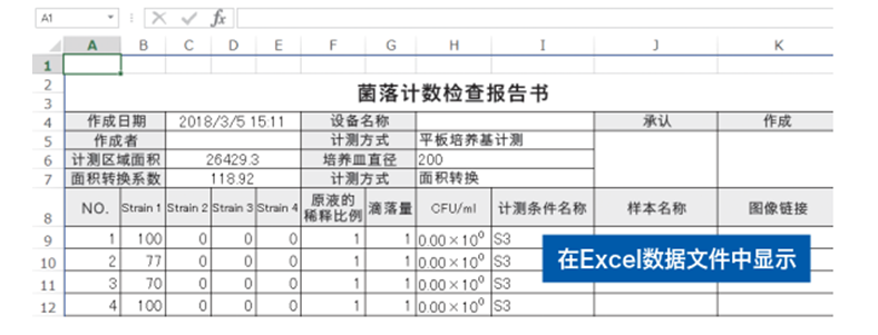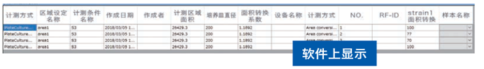 在默认设置下,Petri Dish No,菌落数量和测量区域将显示在软件上。测量结果可以转换为Excel工作表或CSV文件。
