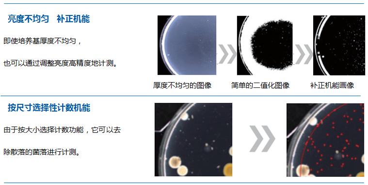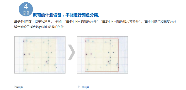 原理:每个菌落的面积计算可以单独测量指定的直径。只要培养基厚度固定,它就能够通过固定的二值化系数只测量指定的菌落。