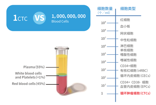 循环肿瘤细胞(CTC)的含量往往只有1~50个。