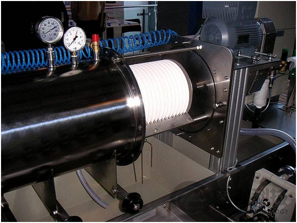离心过滤设备其有效结合了离心机和错流过滤的原理。既拥有纳米级的过滤精度,还可以保证稳定的运行性能和出色的节能效果。系统不依赖进料泵提供高额的循环流量和运行压力,系统内部旋转帮助料液分离和过滤过程。与传统错流截然不同的旋转式结构,利用离心力将流体分成高低浓度,内外圈的不同线速度提供不同的剪切力来应对料液。旋转错流可以让产量更大,过滤更高效,截留物更浓,能耗更低。