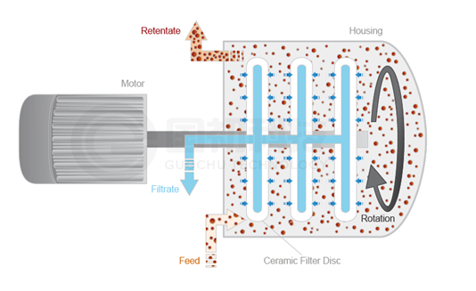 旋转陶瓷膜(动态错流过滤陶瓷膜)优势: