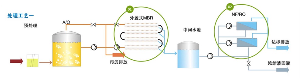 传统生化+外置式MBR+NF/RO工艺: