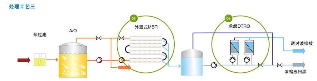 传统生化+外置式MBR+单级DTRO工艺: