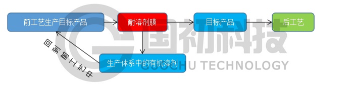 在溶剂体系领域,国初科技还有一项用于与水共沸的有机溶剂渗透汽化脱水技术。这种技术也是利用膜的选择透过性原理,不过分离过程中是以组分蒸汽分压差为推动力,借助各组分在渗透汽化膜材料中吸附扩散速率的不同和分子大小的差别,实现组分间的选择性分离。在渗透汽化膜的一侧引入有机溶剂气相(或液相)进料,而另一侧采用真空抽吸的方式将溶剂中的水及时移走,从而获得无水级的有机溶剂,进一步满足工业生产中的高品质需求。