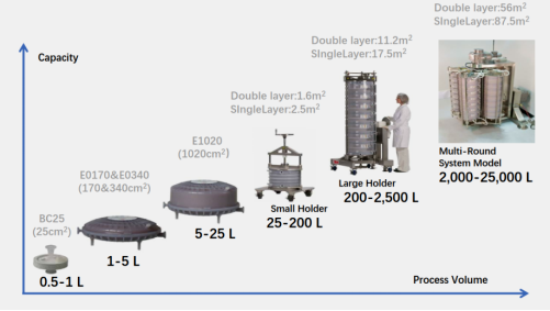 一次性层析过滤器作为新一代生物工艺解决方案,外形紧凑,占地面积小,载量更高,能够在下游精制单元操作中提供更高的纯度和产量,使下游连续操作更加灵活。能有效提高治疗性重组蛋白工艺中的生物产量,支持生物制药公司采用全新生产工艺,实现持续增长及不断创新。