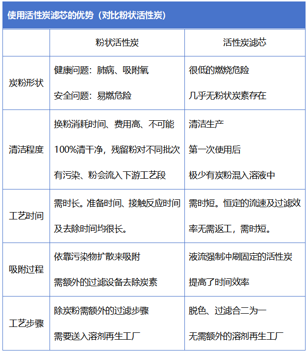 深层滤芯的活性炭系列,将活性炭粉与深层滤芯相结合,具备拦截过滤和活性炭吸附的双重过滤功能,能够实现去除内毒素、去除PKA、去除杂蛋白、去除DNA等效果。所有活性炭滤芯的生产过程严格遵循ISO9001:2000质量体系,所用材料符合美国FDA的21CFR标准,并通过美国药典(USP)VI生物反应等级测试。