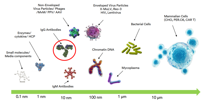 发酵液中杂质组分多,目标抗体的粒径处于中间范围。采用机械拦截方式,难以达到很好的纯化目标。
