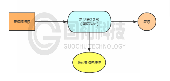 国初科技(厦门)有限公司根据多年在新型分离技术领域的研究,成功把膜分离技术应用在腌渍液脱盐。脱盐的同时可保留青梅汁中的有机酸,糖分,氨基酸等有机物。该新型脱盐技术具有步骤简便,过程中无需添加其他物质,设备占地面积小且脱盐效率人为可控等优点,是一种环保、经济的新型脱盐技术,在实际应用中具有巨大的优势。