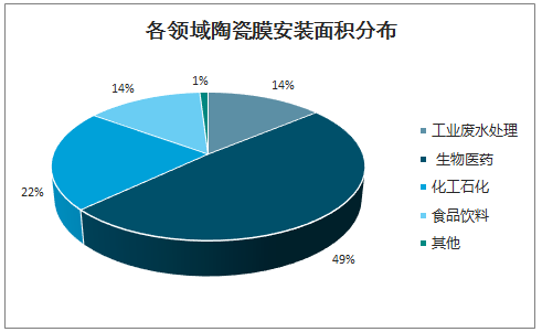 各领域陶瓷膜安装面积分布
