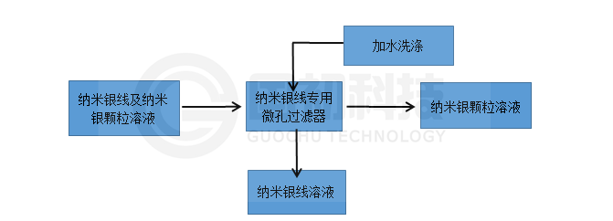 在进行纳米银线制备的过程中可以依靠新型的纳米银线专用微孔过滤器进行提纯,可获得高纯度的纳米银线。该项技术能有效减少生产对于设备的损耗,延长设备的使用寿命,而且设备投资与运行成本低,可在低成本的情况下对纳米银线进行分离纯化。经过新技术分离纯化后,除了提高纳米银线的纯度,还可以结合国初科技其他工艺技术回收分离出的纳米银颗粒。