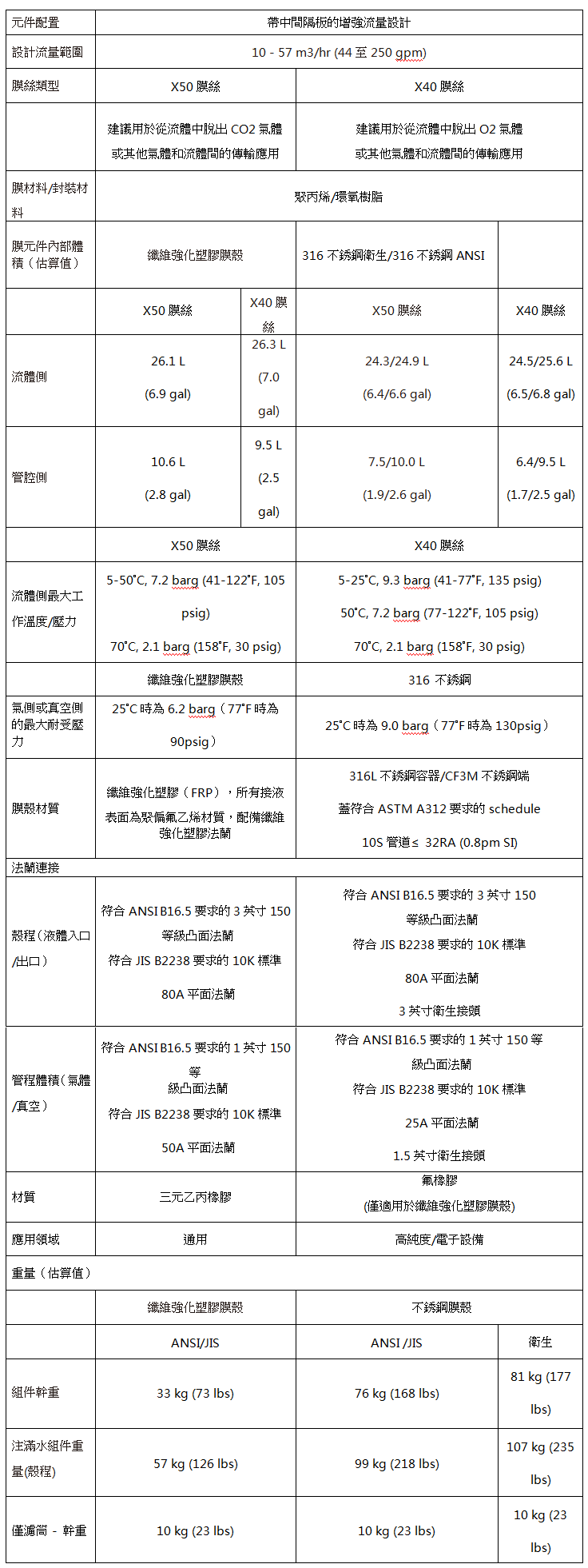 3M™ Liqui-Cel™ EXF-10x28系列膜接觸器產品參數表