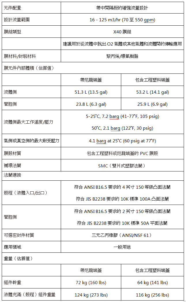 TM EXF-14x40系列所有型號的氣體轉移膜: