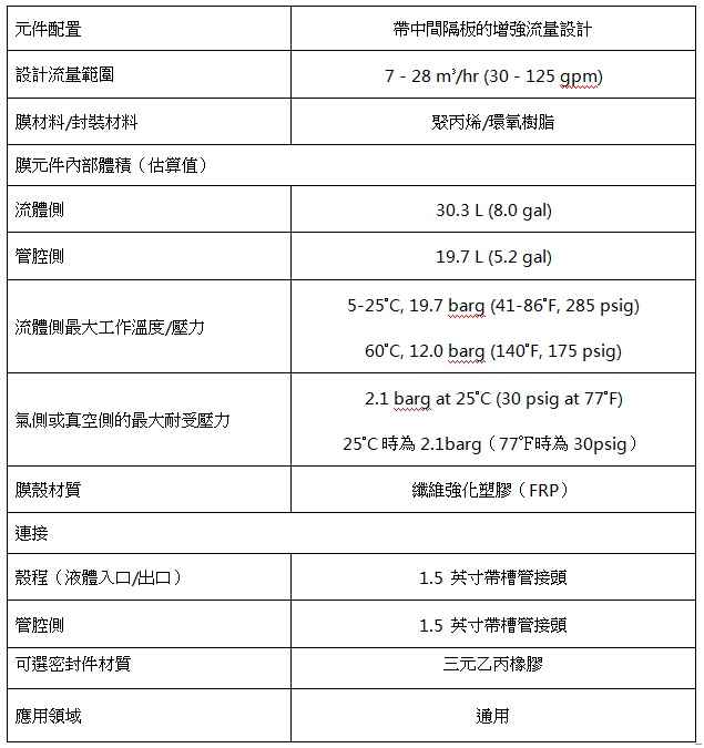 3M™ Liqui-Cel™ EXF-8x80系列膜接觸器產品參數表