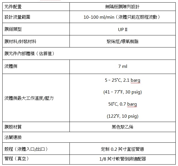 3M™ Liqui-Cel™ SP-1X2系列膜接觸器產品參數表