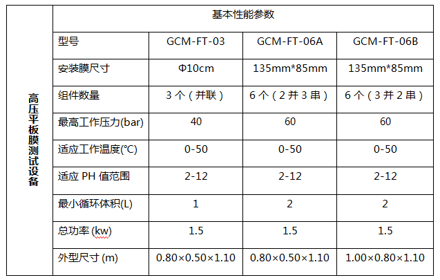 企業、院校進行膜片生產研發或者對膜片改性的研究中,需要對膜片的性能指標進行測試,國初科技專門針對這一狀況研發了平板膜片測試設備,其中高壓型的膜片測試設備的真實測試壓力可達最高60bar,同時測試壓力可靈活調節,可適用於微濾膜、超濾膜、納濾膜、反滲透膜、海水/苦咸水淡化膜等全類型膜片的性能測試,包括水通量、截留率等性能參數。同時還適用於少量料液過濾及教學演示等用途。