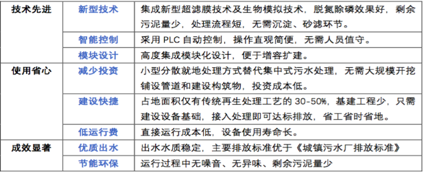 鄉村MBR一體化處理技術將厭氧、MBR及控制室集于一體,克服了傳統處理工藝流程冗長、占地面積大、操作管理復雜等缺點。